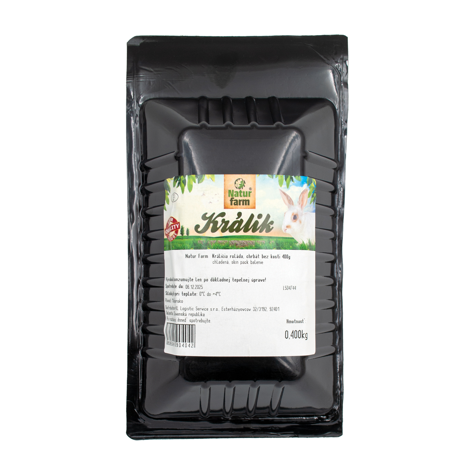 400 g (môže sa líšiť v závislosti od konkrétneho králičieho mäsa) Čerstvá králičia roláda. Chladená. Čerstvo vákuovo balené v ochrannej atmosfére. Výrobok konzumujte len po dôkladnej tepelnej úprave! Králici sa spracovávajú podľa najprísnejších postupov zabezpečenia kvality a hygieny. Po spracovaní mäso vstupuje do baliaceho stroja, kde sú vopred ochladené výrobky zabalené a potom odoslané čo najrýchlejšie do chladiarenských vozov určených na okamžitú expedíciu. Vďaka špeciálnemu chovu a spracovaniu si králičie mäso zachováva vysokú kvalitu. skladujte pri teplote od 0°C do +4°C. Uvedené informácie sa môžu líšiť v závislosti od výrobcov.