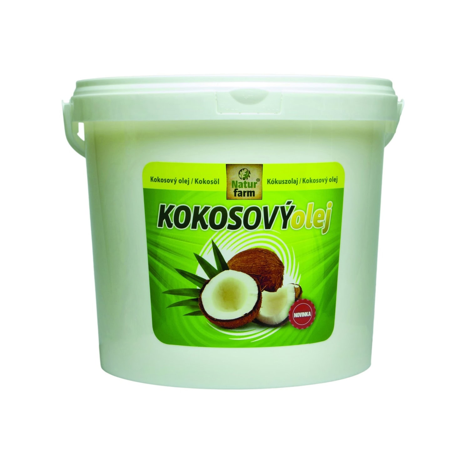 5 l kokosový olej 100 % na varenie, vysmážanie a pečenie; ako náhrada masla, margarínu a iných tukov. Pri teplotách pod 23°C olej tuhne. skladujte na suchom mieste mimo dosah slnečného žiarenia. Po otvorení skladovať pri izbovej teplote a na suchom mieste.